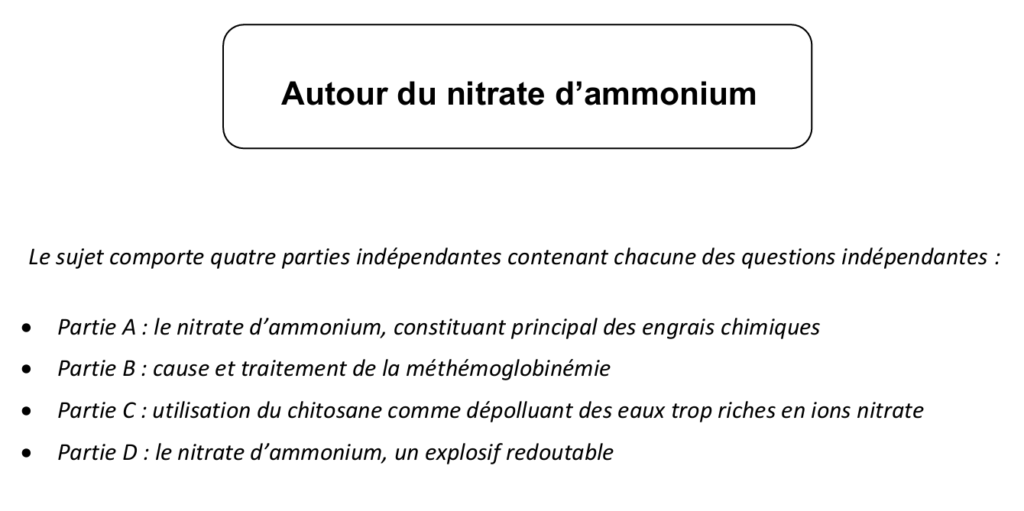 Retrouvez la correction complète et commentée du sujet de chimie du concours licence véto 2024, autour du nitrate d’ammonium :